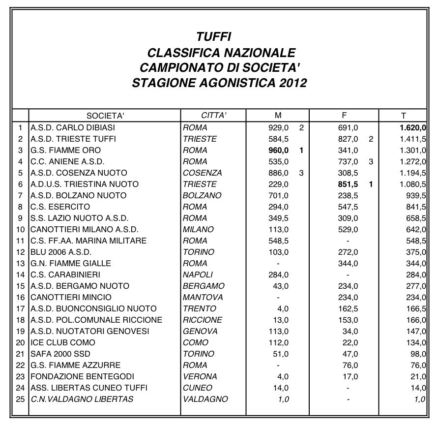CLASSIFICA SOCIETÀ' 2012